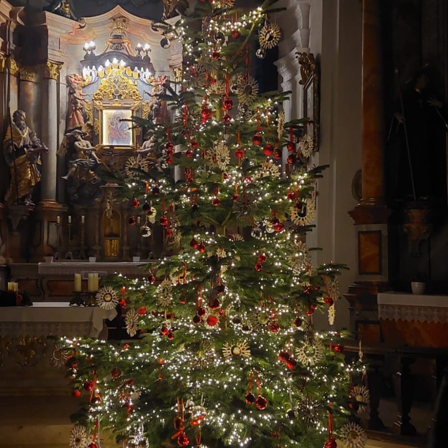 Zur Zeit ist der vom OGV geschmückte Adventskranz und Christbaum am Heilbrünnl zu sehen.